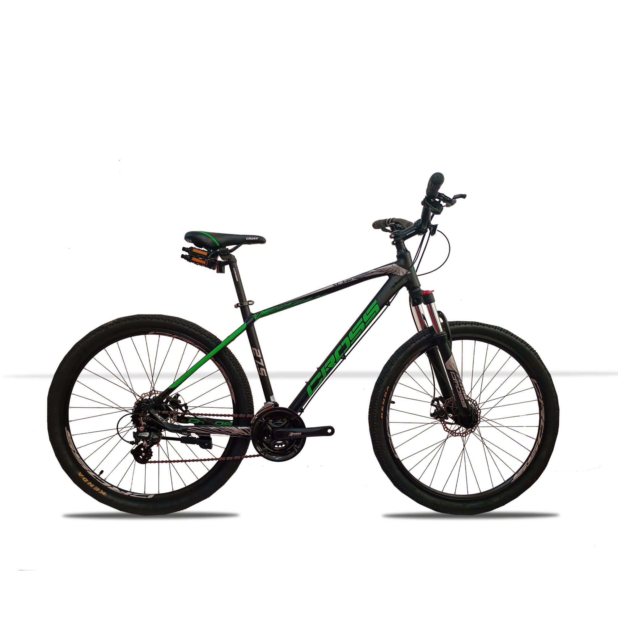 پوشش آنودایز و لوگوی برجسته Cross جلوهای حرفهای به دوچرخه میدهد.